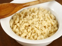 plat 5mm, Gescheurd in kleine stukjes. Warme soep te koken. Als het deeg komt bovenop de soep klaar.